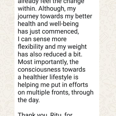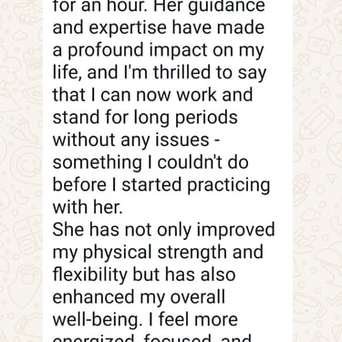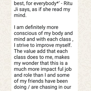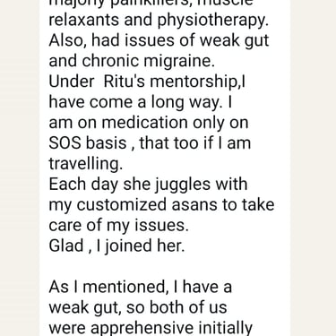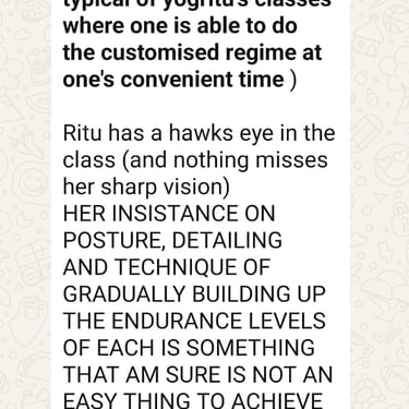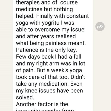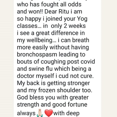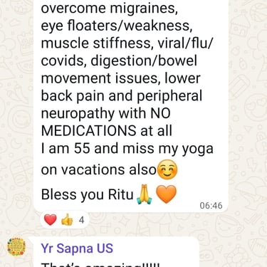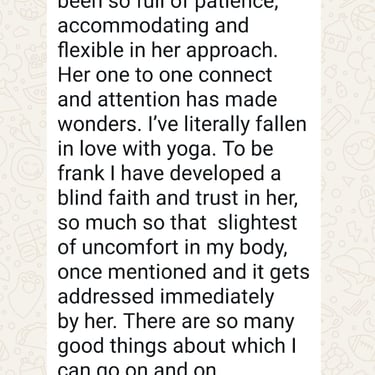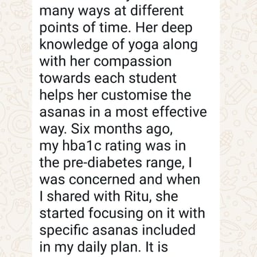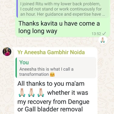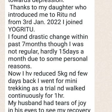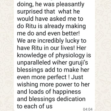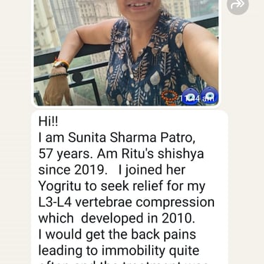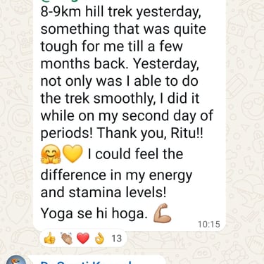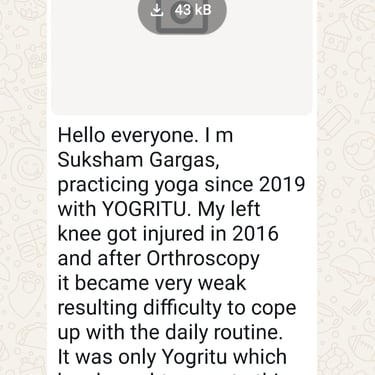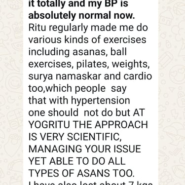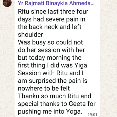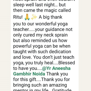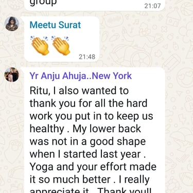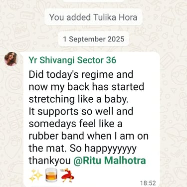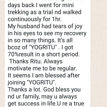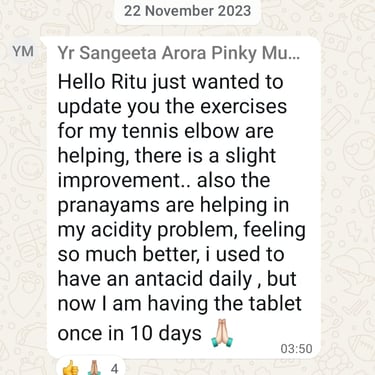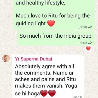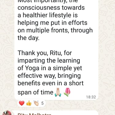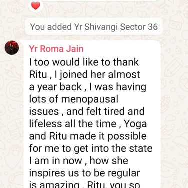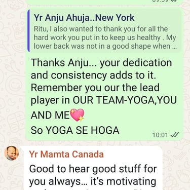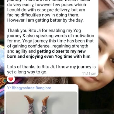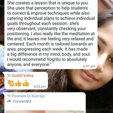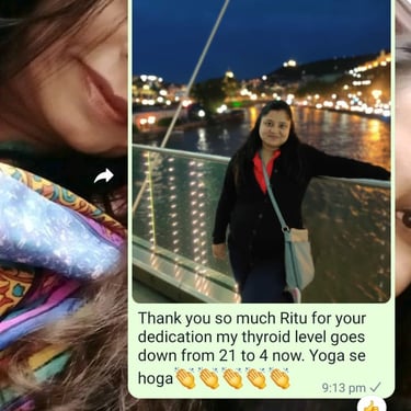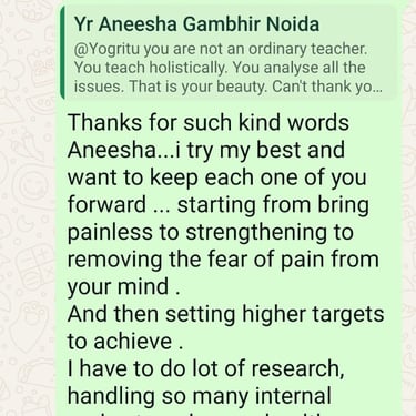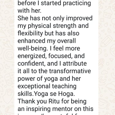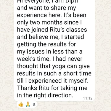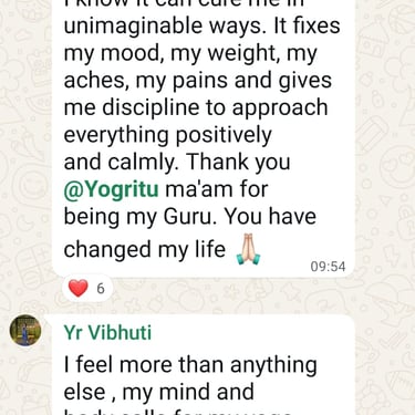 Yogritu is a personalised yoga journey that blends traditional wisdom with modern wellness. Guided by Ritu Ma’am, each session supports physical healing, mental clarity, and emotional balance — making yoga truly transformative for every individual.